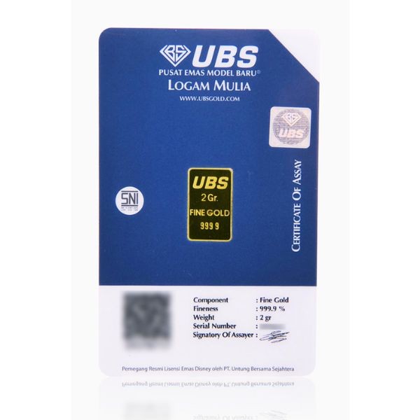 Logam Mulia UBS Gold 999.9 bersertifikat.